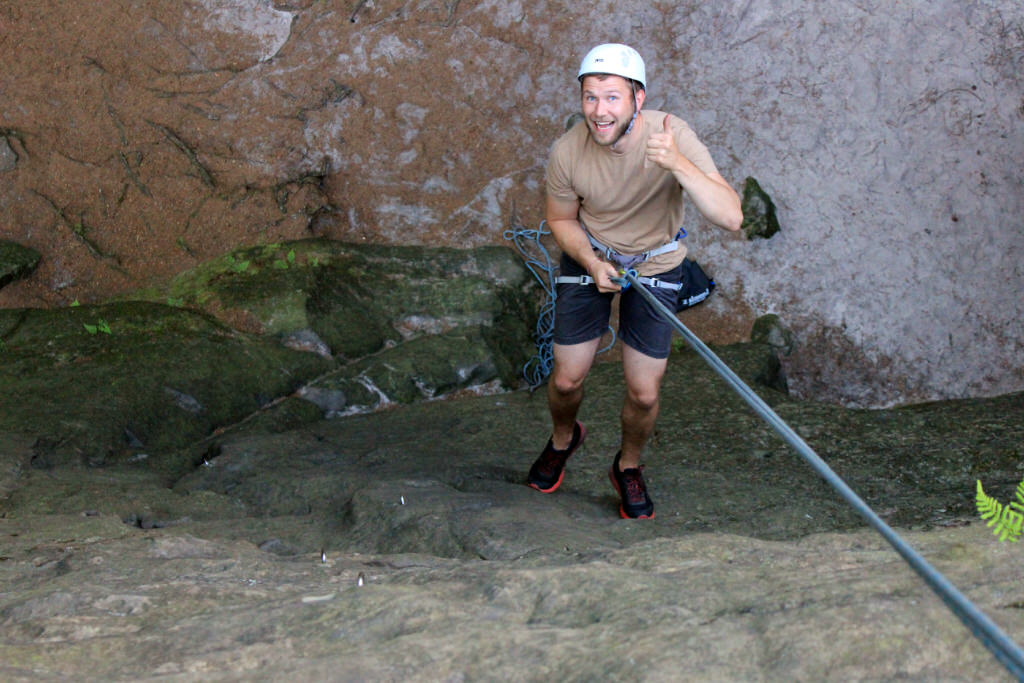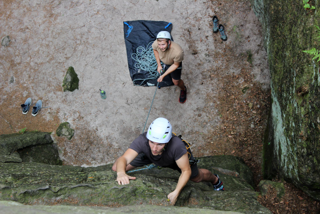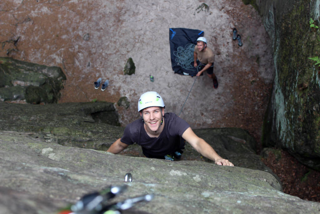 Im Teutoburger Wald könnt Ihr mit uns das Felsklettern mitten in der Natur erleben – eine besonders schöne Erfahrung, bei der Vertrauen eine große Rolle spielt.