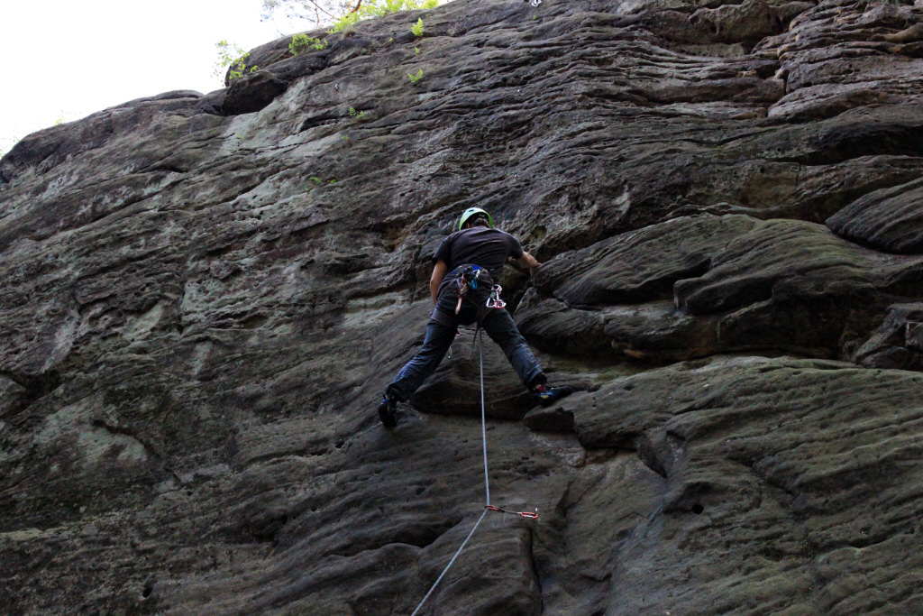 Am Fels angekommen, gibt es von uns eine ausführliche Einführung ins Klettern. Das Material wird vorgestellt und richtiges Sichern geübt. Anschließend entscheidet jede*r selbst wie weit es nach oben geht.