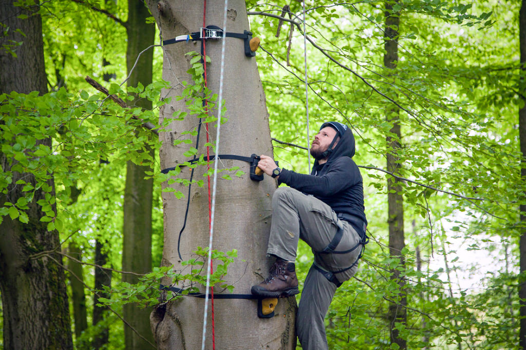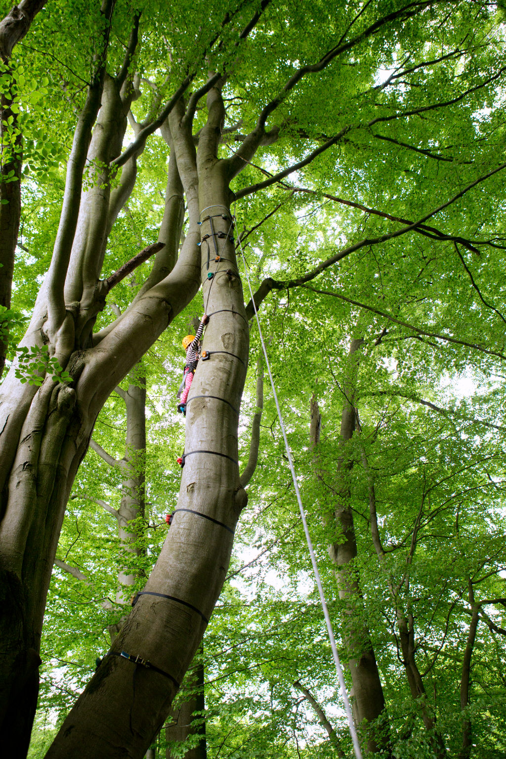 Mit unseren Monkey Griffen haben wir die Möglichkeit, fast überall einen Kletterspot einzurichten. Benötigt wird ein passender Baum, der von uns fachmännisch auf seine Eignung geprüft wird. Ist dieser gefunden, werden Klettergriffe an eine dafür hergestellte Plastikplatte geschraubt und mittels Spanngurten schonend um den Baum gespannt. Am obersten Punkt wird eine Sicherung eingerichtet. Nun kann es losgehen. Vielleicht ja schon vor Ihrer Haustür oder auf dem Gelände Ihrer Firma?